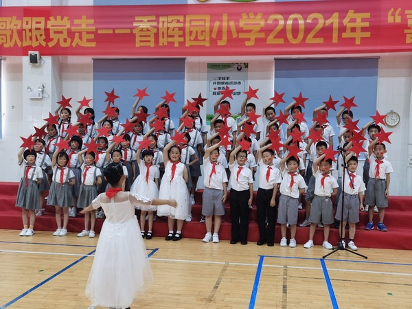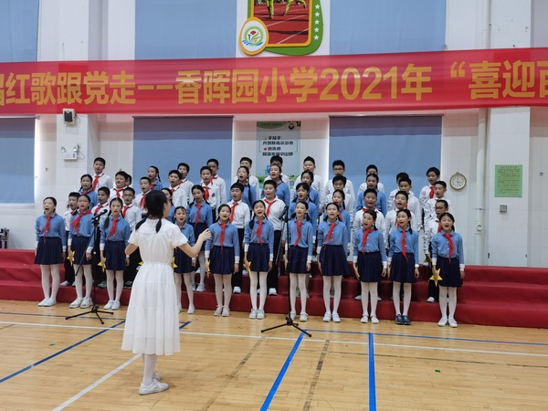 為慶祝中國共產(chǎn)黨建黨100周年,展現(xiàn)學(xué)生熱愛祖國、朝氣蓬勃的精神風(fēng)貌,堅定少年兒童跟黨走的信念,2021年5月13日,開發(fā)區(qū)香暉園小學(xué)以“紅領(lǐng)巾心向黨 高唱紅歌跟黨走”為主題,舉行了“喜迎建黨百年”的校園合唱比賽。
