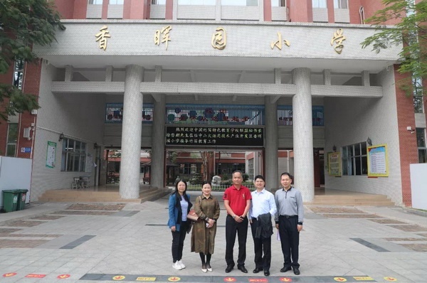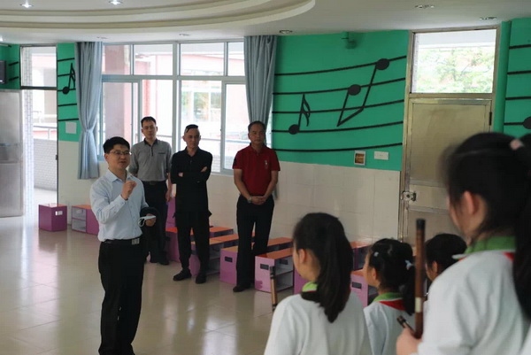 3月16日下午,開發區香暉園小學校園內笛聲悠揚。中國竹笛特色教育學校聯盟秘書長徐登朝、中央電視臺導演吳德輝及深圳笛友之家董事長、深圳市葫蘆絲巴烏學會副會長吳東針一行來到該校進行考察交流。香暉園小學校長陳澤湖、副校長陳肖影、學校竹笛藝術總監葉建林、教導處副主任周雷及少先隊輔導員杜沁源熱情接待了考察團一行。