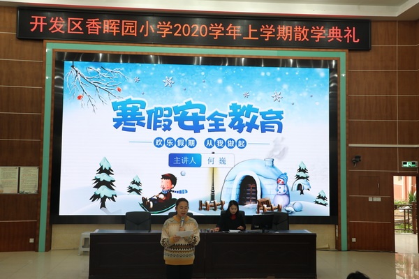 1月15日上午,開發區香暉園小學以學校報告廳為主會場,采用全校電視現場直播的形式舉行了2020-2021學年第一學期散學典禮,該校少先隊輔導員杜沁源主持了此次散學典禮。