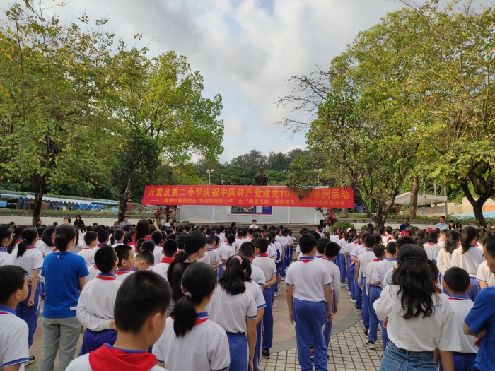 最美人間四月天,正是少年讀書時。今年恰逢中國共產(chǎn)黨成立100周年,為讓少先隊員牢記身上的使命,以知識武裝自己的思想,同時進一步推進書香校園建設(shè),引導(dǎo)學(xué)生走進博大精深的書香世界,享受閱讀的快樂,感受閱讀的幸福。開發(fā)區(qū)第二小學(xué)緊跟時事,開展以“高舉隊旗跟黨走,爭做陽光好少年”為主題的系列活動。4月1日上午,開發(fā)區(qū)第二小學(xué)全體師生齊聚在小操場,舉行“閱讀悅美,悅享童年” 2021年讀書節(jié)開幕式。