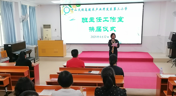 2021年4月12日下午,開發區第三小學在階梯教室舉行“班主任工作室換屆”儀式,劉光旗校長攜全體教師參加儀式,會議由楊潤松老師主持。