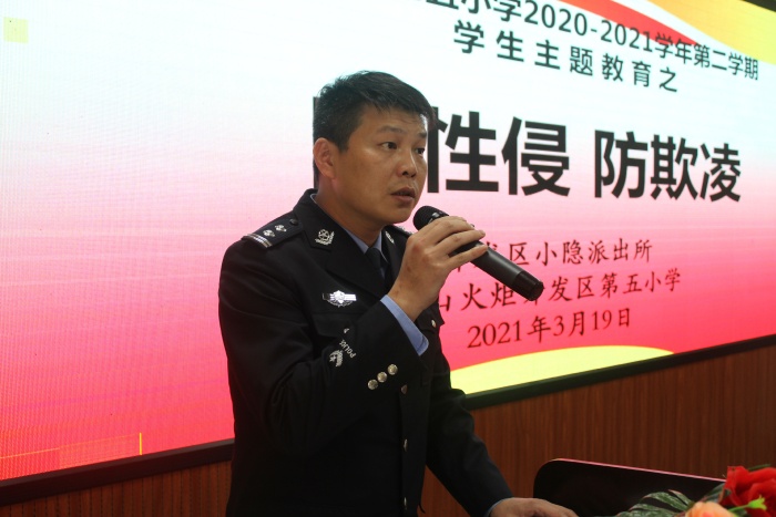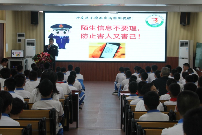 活動開始以胡冬梅校長為小隱派出所余冬茂副所長、黃偉權警員分別頒發“法制副校長”、“校園民警”聘書拉開序幕。法制副校長余冬茂所長為學生進行安全教育的主題講座,余所長分別從信息詐騙、毒品犯罪、防性侵、校園欺凌以及什么是犯罪、如何防范等方面對學生進行了專門講解。余所長用一個個鮮活的事例,提醒學生一定要提高警惕,學會自我保護,不要輕信陌生人,不吃陌生人的飲料和食品。內衣所及之處都隱私部位,任何人提出對這些部位的身體接觸,都要斷然拒絕;對于陌生人或熟人自己認為不舒服的其他部位的身體接觸,要勇敢地說“不”。關于校園欺凌要人要做到不他人,也要防人欺,同學之間友好相處、文明相處。