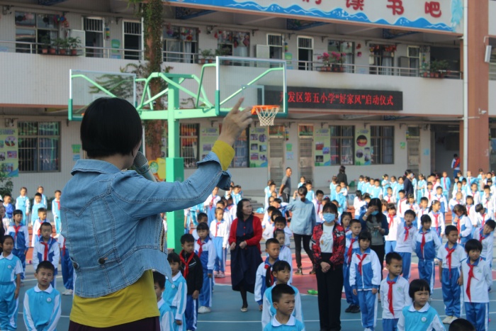 11月23日上午,在第五小學大隊輔導員阮結連老師的主持下,全體師生參加了“好家風”啟動儀式。在啟動儀式上,四(2)中隊的許浩卓同學以“弘揚中華美德,傳承良好家風”為主題進行了國旗下講話。隨后,德育處曹怡主任也進行了動員講話。曹主任指出,家庭是社會的細胞,傳承家庭美德,樹立良好的家風,對學生的影響是一生的。對于國家來說,好家風是形成良好的社會風氣的關鍵所在。