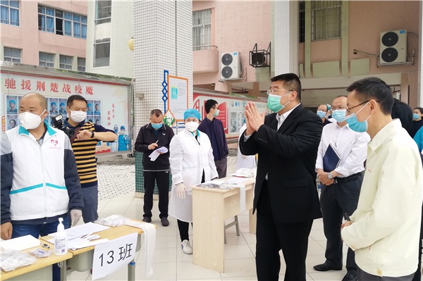 期間,正在學校出席火炬區2020春季學期學生復學工作座談會的市委副書記、區黨工委書記陳文鋒同志,來到現場看望了工作人員。