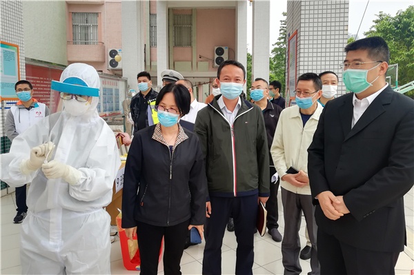 座談會前,市委副書記、區黨工委書記陳文鋒還察看了火炬區一中校門口快速測溫儀通道,與來校為畢業班學生進行核酸測試的工作人員進行交談。同時他還來到學校擴建工地,詳細了解擴建工程的進展情況。