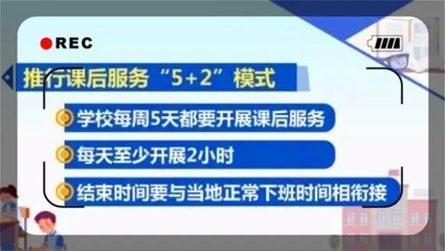 校外機構的關停,那么校內的教育就更要搞好,于是提出了“5+2”課后延時服務,這是針對有需要的學生進行的一項暖心的政策,旨在給那些在孩子放學時,沒有時間接孩子提供 一項服務。