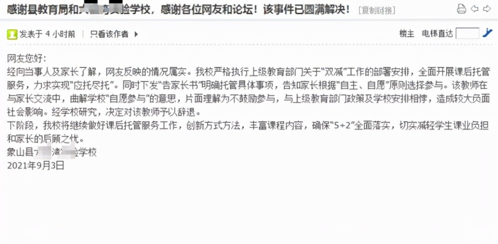 于是班主任說,難道學生家里沒人了,是單親家庭?沒人接送學校門口還有托管呢,意思是希望不能按時接送孩子的家長,可以像過去那樣選擇托管呀,這樣就皆大歡喜了。