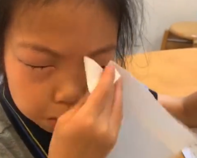 一位浙江的網(wǎng)友在網(wǎng)上曬出了一段9歲小學(xué)生做數(shù)學(xué)題的視頻,視頻中我們看到,這位小學(xué)生正在不斷地揉眼睛,仔細(xì)一看發(fā)現(xiàn)她眼睛四周出現(xiàn)了過敏情況:長了很多小疙瘩。