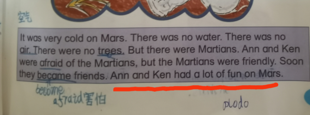 孩子是這樣斷句的:Ann and Ken had || a lot of || fun on Mars