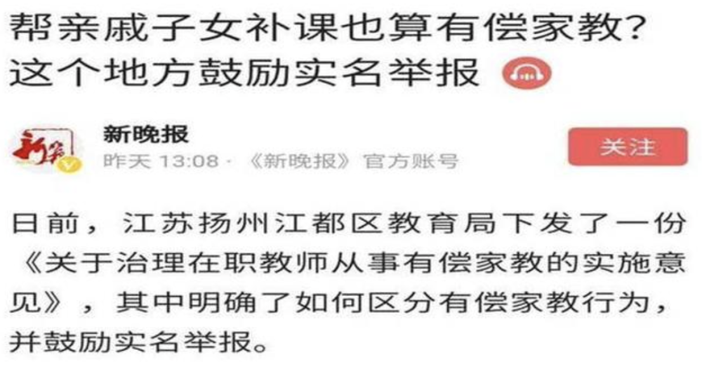 但該政策的推行過程中,也發生了一些被網友們質疑的問題,比如暑假期間出現有在職老師給自己孩子補課,卻被鄰居舉報的問題。