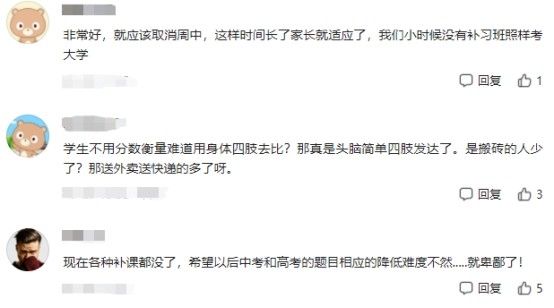 但是,國(guó)家之所以推行“雙減”政策,就是為了減輕中小學(xué)生的負(fù)擔(dān),現(xiàn)在校外培訓(xùn)機(jī)構(gòu)鉆國(guó)家政策的“空子”,在周中上課,這么做并不能為學(xué)生減負(fù),反而會(huì)加重學(xué)習(xí)負(fù)擔(dān)。