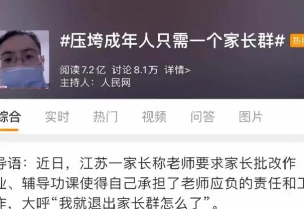 視頻里這位寶爸帶著口罩,隔空對(duì)孩子的老師喊話:“我就退出家長群怎么了,你們老師上課不用心教,下課叫家長幫忙批改作業(yè),那要老師干什么?”