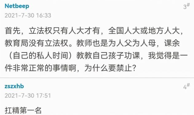 甚至還有家長(zhǎng)表示,可以將這一提議立法,利用法律來限制教師為自家學(xué)生補(bǔ)習(xí)。但這一建議并沒有得到網(wǎng)友的認(rèn)同,教師也是父母,教自家學(xué)生功課也是正常的。