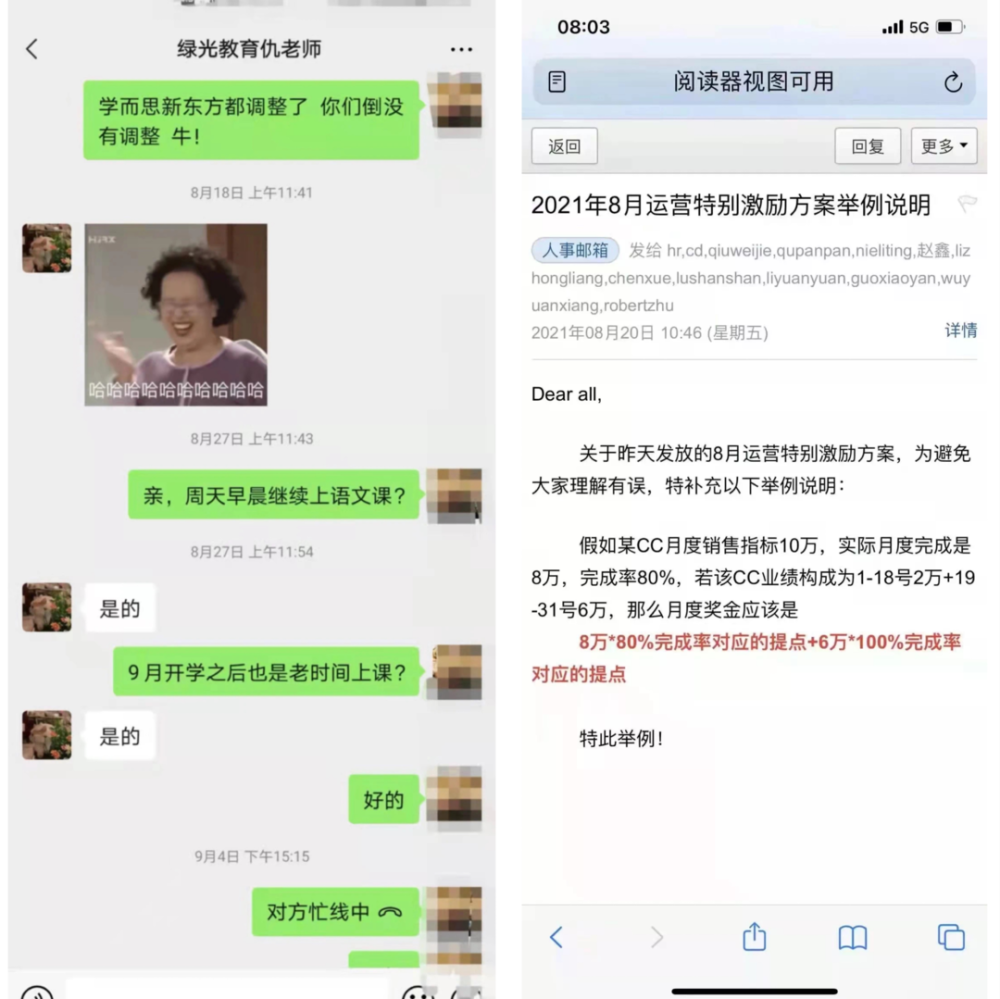而在這之前,“綠光教育”在整個2021年8月、甚至是9月3日之前還在賣力地推銷各類培訓課程!甚至是其內部,也在給所有的銷售人員、老師發8月運營激勵特別方案的郵件!