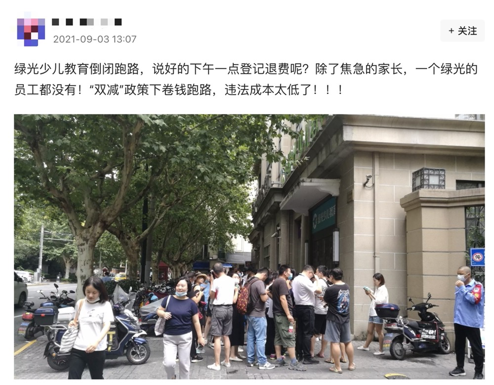 2021年9月3日,在上海經營了20年之久的學科類教培機構――“綠光教育”毫無征兆地在其官方微信公眾號發布了其破產關校的公告。