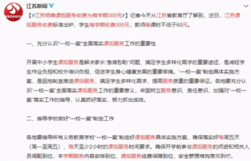 江蘇課后延時服務收費標準出爐,每月不到一百,家長卻不滿意