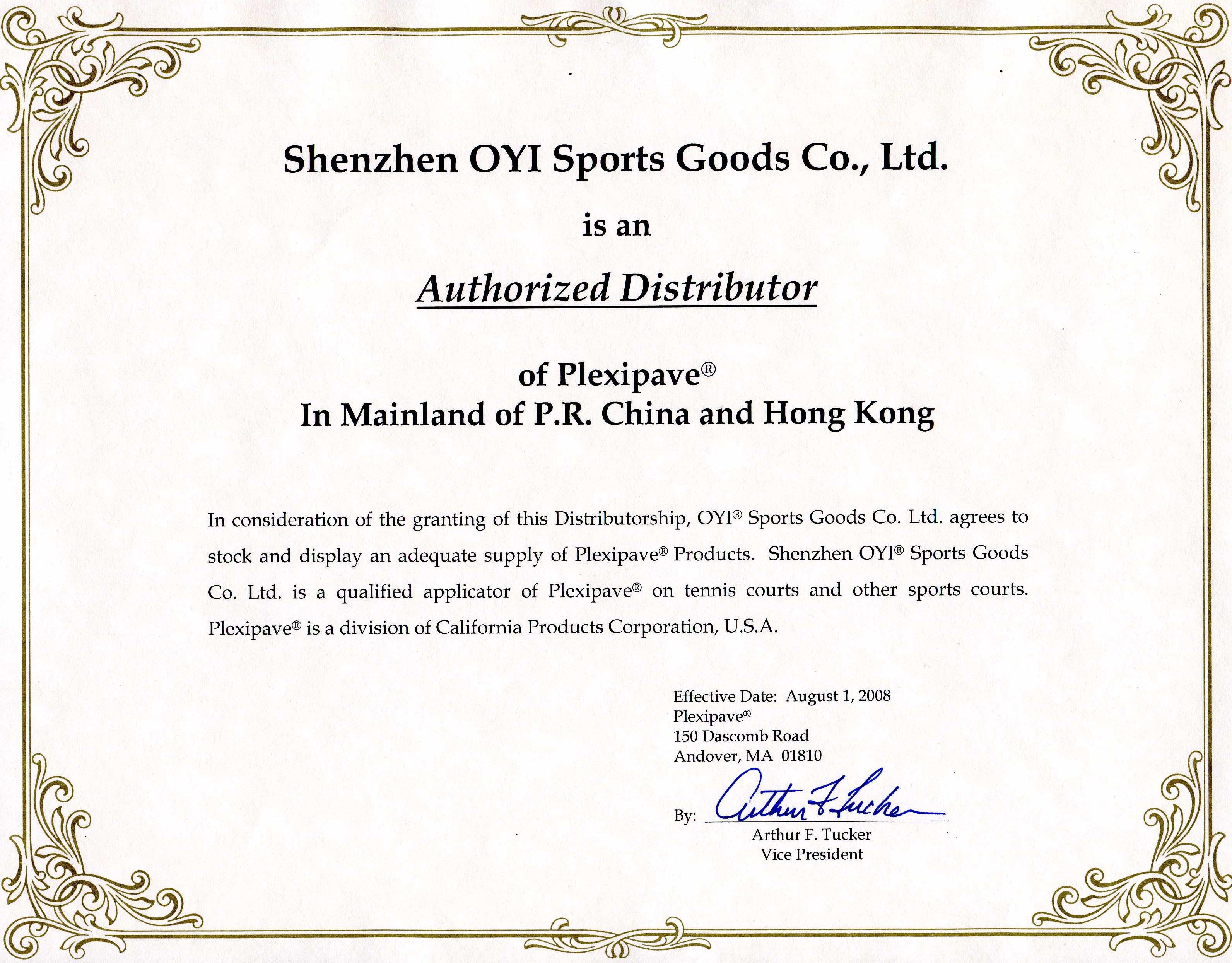 奧悅為Plexipave合格營造商與受權經銷商證書