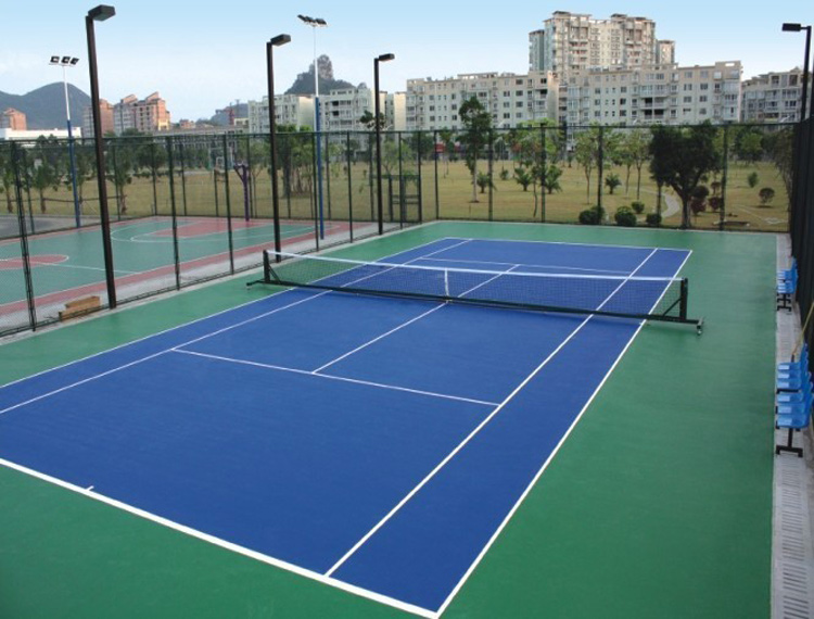 彈性丙烯酸材料簡介材料簡介:丙烯酸樹脂球場(彈性丙烯酸網球場,硬地丙烯酸網球場)適用于專業選手比賽和訓練使用,由100%純丙烯酸乳液加入進口色料及助劑制成,完全符合環保要求,具有較好的耐磨性能,防水、防曬、防滑、可鋪設于室內外瀝青或水泥面上。可依照加砂及水的配比調整表面糙度。中級性能產品。產品特點:原材料全部選用世界知名品牌,并采用先進技術制成。具有良好的透氣性和適中的硬度。具有良好的耐水、耐候及耐磨性。多種顏色可供選擇。應用范圍:室內、外籃球場、網球場、羽毛球場等施工工序:打磨場地">