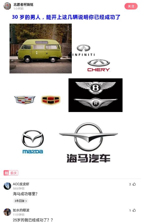 【沙雕問題2】: 30歲的男人,能開上這幾輛說明你已經成功了。