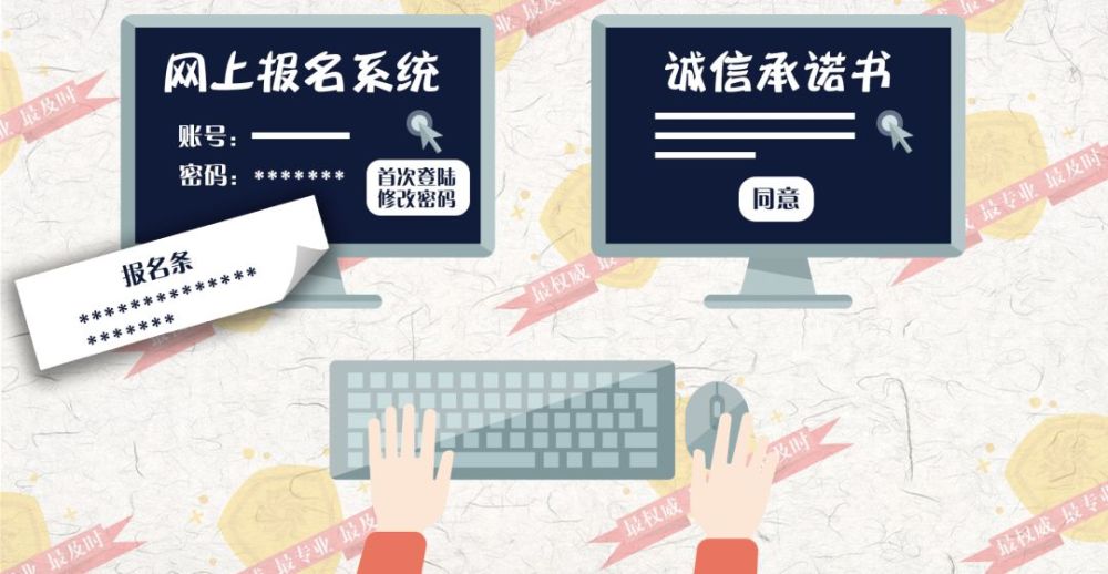 憑報名條進入網上報名系統。初次登錄時,要修改密碼,閱讀誠信承諾書并點擊“同意”。