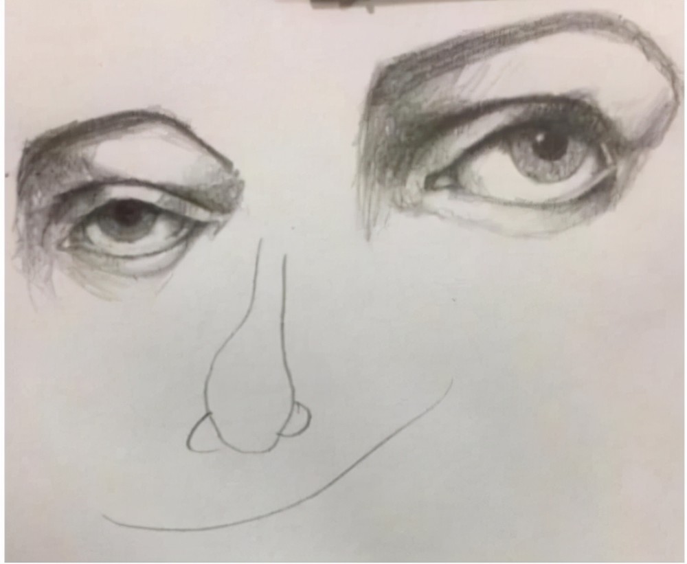 于是,作品中,眼睛部分雖然不算精致,卻也看得過去。而鼻子與嘴巴線條可謂極其潦草,讓人看都不忍看。閱卷老師看到這幅作品時,唯一的點評就是:不忍直視!
