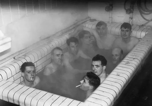 基本的淋浴、餐飲、按摩等自然準(zhǔn)備萬全,泡澡的需求也必須得到滿足。從很多年前開始,英格蘭球員們比賽過后泡個(gè)澡,順便喝點(diǎn)香檳或者抽點(diǎn)煙就已經(jīng)成為慣例,那個(gè)時(shí)候的球員集體浴缸往往是這樣的:
