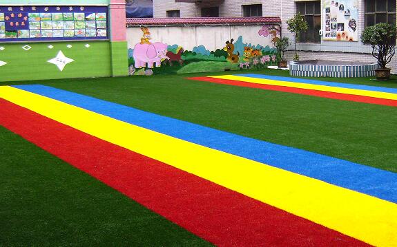 幼兒園草坪是休閑草坪的一項重要分支,除了必須具有一般休閑草坪的優勢以外,針對服務對象是幼兒園、兒童的這一群體特性,還需要更加具有美觀性和趣味性的特點。如今具有一定技術的人造草坪生產廠家,可以在草坪生產時就將設計好的各種彩色圖案和卡通形象融入綠色底色的草坪,使之形成一個整體,無需拼接,一次鋪裝,營造出童話般的綺麗世界。