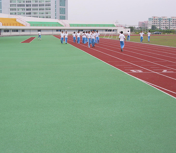 5.其耐磨性能是傳統工藝的數倍,同時又克服了傳統聚氨酯跑道易掉粒的通病,且表面美觀整潔易清洗,表面磨擦力高于國際田聯標準,材料環保、質量更穩定;