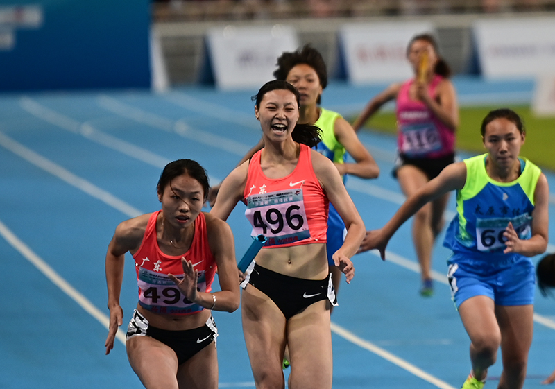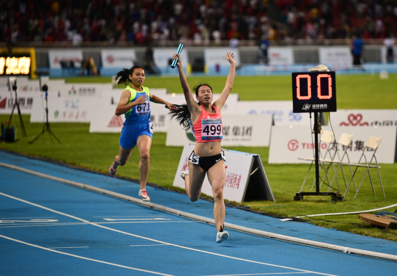 雙胞胎姐妹壓軸最后兩棒。朱翠薇第三棒出戰,廣東依然維持較大優勢,姐姐朱翠妍與妹妹接力后跑完最后一程,廣東隊領先山西隊0.8秒奪金。朱翠妍認為隊友建立的優勢讓自己可以輕松應對最后一棒。