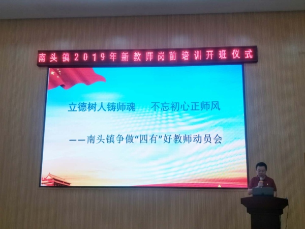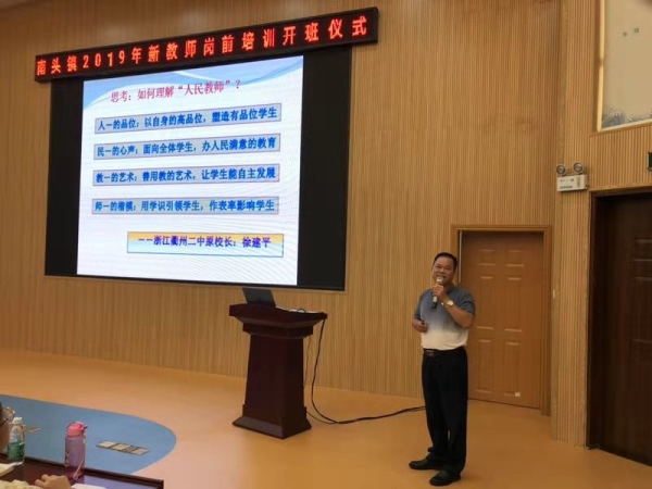 當天上午,文體教育局局長吳永高進行開班動員講話,他要求新教師要樹立遠大的目標,爭做“四有”好教師,要做到“堅持愛崗敬業不動搖”、“堅持學習不自滿”、“扎實工作不浮躁”、“樹立目標助成長”,更好地為南頭鎮教育事業發展做出貢獻。鎮黨委委員薛焯明介紹了南頭鎮近年來經濟發展和教育事業發展的情況,他要求新教師要不忘初心,牢記使命,努力辦讓南頭鎮人民滿意的教育。為了南頭教育事業更好地發展,要求新教師做到“責任要定位”、“工作要到位”、“思想要換位”和“問心要無悔”這四個要求。接著,教育事務指導中心主任謝桂華主任就圍繞如何成為好教師和造就好課堂,結合教學案例給青年教師開展了職業理想教育教育專題講座——《好老師,好課堂》 。講座指出“課堂是教師智慧成長的主陣地”和“教師是課堂有效生成的主導者”這兩個觀點,隨著課程的改革,新教師建設的課堂應該突出學生的“自主、合作、探究“的課堂。最后,升輝小學的一線優秀教師李蘭蘭給新老師分享工作的經驗,在教師成長專題講座中,她分別從“態度”、“團隊”和“能力”這三方面闡述了她如何在短短幾年迅速成長,她強調了態度決定一切,新教師要善于抓住機會提升自己。
