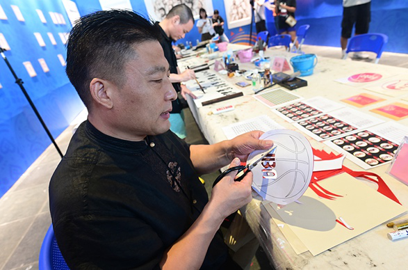 活動現場,多名來自廣州剪紙協會的剪紙工藝大師非常關注在廣州舉辦的籃球世界杯賽事,希望通過剪紙的方式來表達對運動員們的敬仰之心。他們反復揣摩構思,精心創作了本屆籃球世界杯全球宣傳大使——姚明、科比·布萊恩特、德克·諾維斯基的人物剪紙作品。作品極具人物標志性運動風格、活靈活現,讓人贊嘆不已。