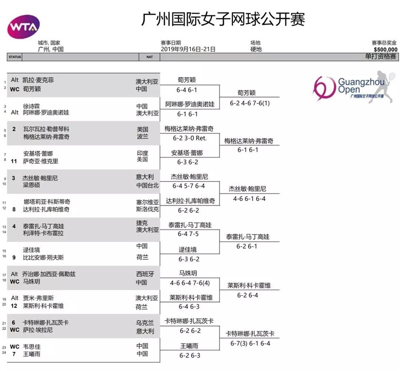 在其他場(chǎng)次的比賽中,3號(hào)種子泡利尼4-6/6-1/6-4逆轉(zhuǎn)8號(hào)種子扎庫帕維奇,攜手波蘭選手弗雷奇晉級(jí)正賽,后者6-1/6-1橫掃印度選手蕾娜,持外卡出戰(zhàn)的小將馬姝玥2-6/4-6不敵科卡霍維。
