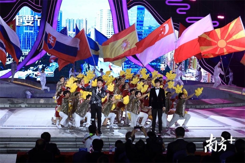 接著,一波具有中國特色和嶺南文化的文藝展演開始,在舞臺炫目的華燈下,《佛山華光 古今輝映》《嶺南文化 驛道綿延》《龍騰獅舞 敢為人先》《走在前列 樵見世界》等精彩表演。