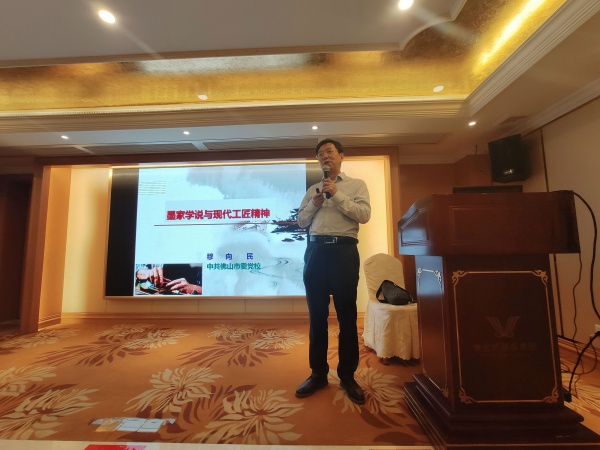 10月26日上午,佛山市委黨??蒲刑幹魅文孪蛎駷閷W員們作《墨家學說與現代工匠精神》專題講座。穆主任從墨家源流與思想、墨家思想對工匠精神的啟示、現代工匠精神的內涵與魅力、重塑新時代的工匠精神四方面談古論今,指出墨家精神是工匠精神的源頭,用大量事例講述了何為工匠精神,對現代工匠精神作了詮釋:現代工匠精神,早已經超越了產業與技術的層次,而成為自我價值的社會實現與歷史實現追求,成為人生的一種修行,一種充滿了情懷的精神家園。穆主任深入淺出的講解,讓學員們認識到:責任、忠誠、敬業是工匠精神的價值觀所在,如何在教學中培養學生的工匠精神,從工匠精神在現代制造的價值中找到職業自信,從時代變遷中認識工匠精神的道德與技術內涵,從職業情懷中提升工匠精神的責任與擔當,是職中教師要思考的新課題。隨后舉行了結業典禮,為期六天的中山市中職工業4.0方向骨干教師培訓圓滿結束。