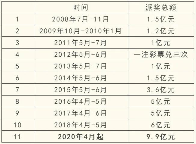 第20030期(4月27日20:10開始銷售)起,體彩大樂透將開啟本年度全國范圍內的大派獎活動,派獎總金額高達9.9億元,活動預計持續25期到6月下旬結束。據悉,這是自去年大樂透新規則實施以來,迎來的首次全國派獎活動,也是大樂透繼2018年6億元大派獎后再度開啟的全國派獎活動,更是大樂透史上力度最強的一次派獎活動。