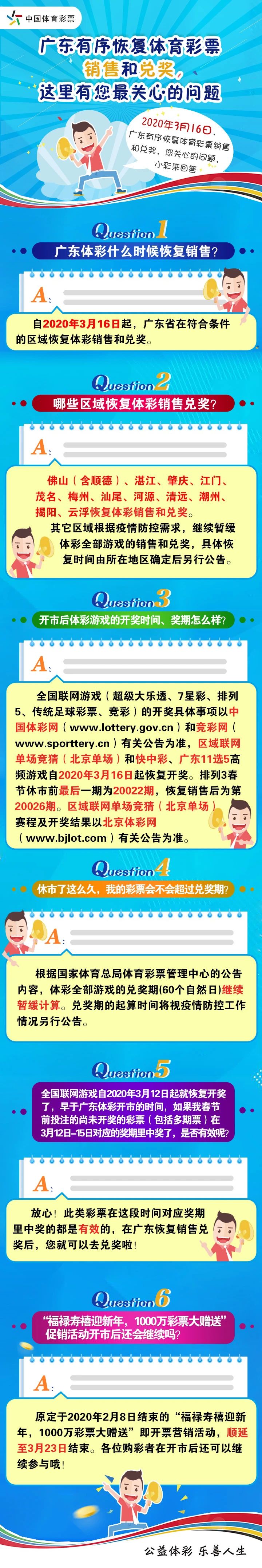三、體育彩票全國聯網游戲(超級大樂透、7星彩、排列5、傳統足球彩票、競彩)的開獎、全部游戲的兌獎期的起算時間等具體事項以中國體彩網和競彩網有關公告為準。區域聯網單場競猜(北京單場)和快中彩、廣東11選5高頻游戲自2020年3月16日起恢復開獎。排列3游戲春節休市前最后一期為20022期,自3月16日起恢復銷售,新銷售的期號參照國家體育總局體育彩票管理中心當日開獎節目中設定的期號來編排,為第20026期。區域聯網單場競猜賽程及開獎結果以北京體彩網有關公告為準。