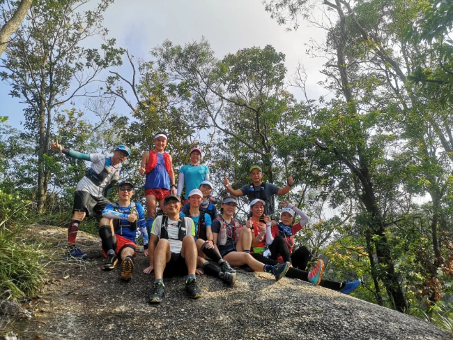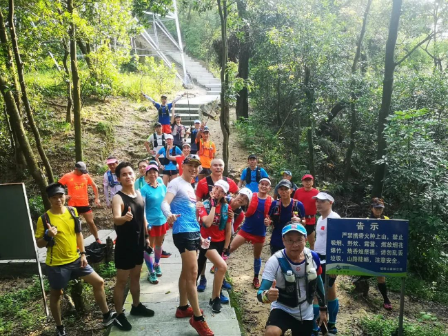 K1位開始,去到板樟山公園1340臺階位的這段中林道,略有起伏,飛人們?nèi)匀豢梢钥癖?,因此基本捕捉不到他們的身影。但無論是飛人大部隊還是跑得慢的收尾小分隊的,都喜歡在白蓮洞中林道愛心石這里留下合影。