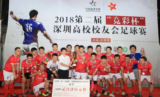 2018年9月9日,“夢想,用愛上場”第二屆競彩杯深圳高校校友會足球公益賽決賽在深圳灣體育中心外場落下帷幕。中山大學以3比1戰(zhàn)勝華南師范大學,榮膺冠軍。