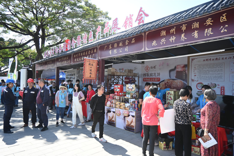 除了感受僑批文化,參與本站賽事活動的人還能全方位體驗“潮人潮品”,感受“潮味”十足的文旅盛會。賽事活動期間,賞潮劇、潮州音樂、功夫茶藝,參觀、體驗鐵枝木偶、核雕、大吳泥塑、毛筆、木雕、嵌瓷、推光金漆畫、制茶技藝及壺藝制作等潮州非遺,現(xiàn)場還有潮派建筑模型展示、大美潮安及綠美潮安圖片展覽、潮州美食特產(chǎn)展銷,此外潮安區(qū)書法家現(xiàn)場“送福”,身著古裝扮演各種狀元、書生、武士等角色的演員穿梭于龍湖古寨的“三街六巷”……潮州戲劇、音樂、工藝、民居、飲食、特產(chǎn)等“潮味”十足的內(nèi)容讓人全方位體驗潮州文化的獨有韻味。