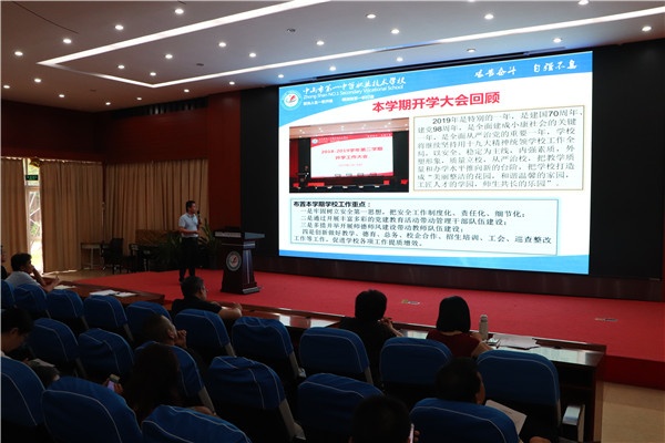 龍衛(wèi)平校長(zhǎng)如數(shù)家珍地回顧和總結(jié)了本學(xué)期學(xué)校各項(xiàng)工作取得的主要成果,指出學(xué)校工作呈現(xiàn)以下亮點(diǎn):突出政治定位,以黨建引領(lǐng)學(xué)校各項(xiàng)事業(yè)改革發(fā)展;多措并舉開(kāi)展師德師風(fēng)建設(shè),通過(guò)開(kāi)展豐富多彩的黨建教育活動(dòng)帶動(dòng)了管理干部隊(duì)伍建設(shè);深化教育教學(xué)改革,突出精細(xì)化管理,各項(xiàng)師生比賽成績(jī)?nèi)〉猛黄疲龠M(jìn)了學(xué)校內(nèi)涵發(fā)展;深化德育內(nèi)涵建設(shè),扎實(shí)推進(jìn)了“啟亮”德育特色品牌工作;進(jìn)一步拓展校企培訓(xùn)合作廣度,做好后勤財(cái)務(wù)精細(xì)化管理,促進(jìn)學(xué)校各項(xiàng)工作提質(zhì)增效。