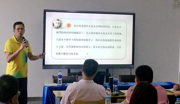 福建師大附中翁乾明校長用自己的親身經歷,把“自我突破”講解得淋漓盡致,整場報告收放自如,氣氛輕松,令學員們感染頗深,受益良多。福建師大心理學院副院長、福建心理學會秘書長孟迎芳教授圍繞“學習動機”這一核心,面授“教學之道”,告誡在場學員們要在教學中正確處理學習動機與學習效果的關系,善于關注和激發學生的學習動機。福建師大附中教務處主任、中招辦主任李明哲老師則以《信息可視化在教學中的運用》為題,向學員們介紹了“信息可視化”傳播的理念和重要意義,傳授如何把知識變得更有趣、更形象、更有用的寶貴經驗。