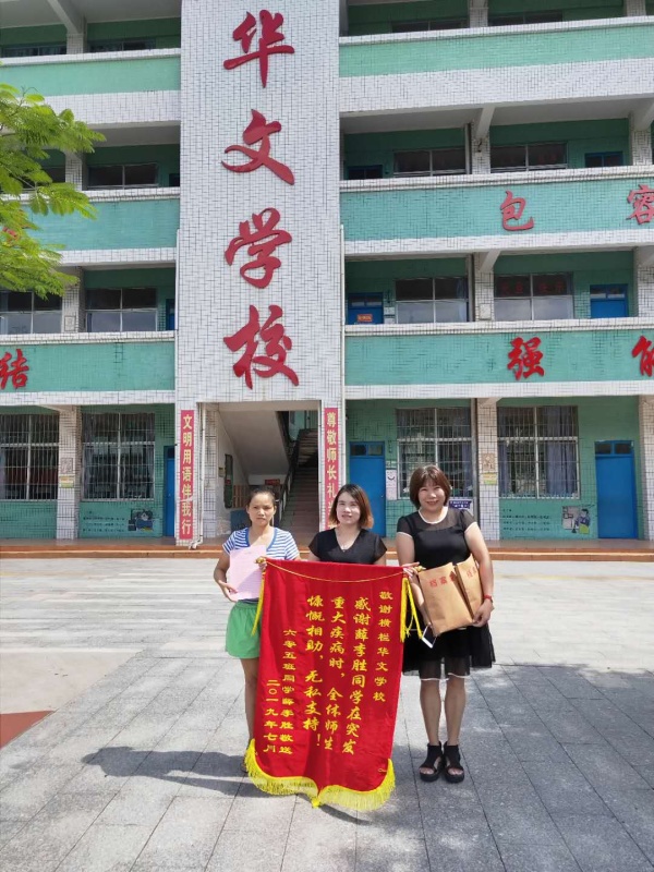 學(xué)校得知這事后,立刻向全校師生發(fā)出了愛(ài)心捐款倡議并在期末散學(xué)典禮上舉行愛(ài)心捐款活動(dòng)。活動(dòng)得到了全校師生的積極響應(yīng),學(xué)校行政班子成員帶頭捐,其他師生緊隨其后,大家紛紛伸出關(guān)愛(ài)之手。涓涓之水,匯出愛(ài)的暖流。此次愛(ài)心捐款共為患病學(xué)生籌得了46800元,緩解了該生家庭的燃眉之急。學(xué)校師生的善舉也感動(dòng)了該學(xué)生及其家長(zhǎng),7月28日上午,該生媽媽親手寫(xiě)了一份感謝信送到華文學(xué)校,同時(shí)向?qū)W校贈(zèng)送了一面錦旗以表達(dá)全家人的感激之情。