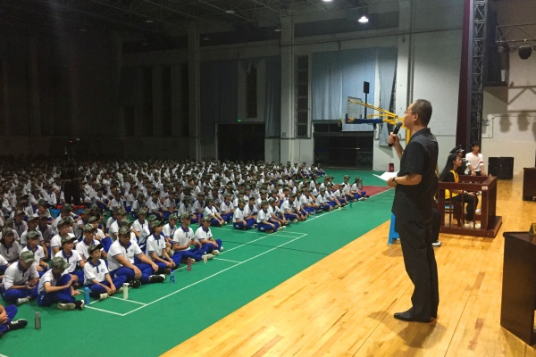 8月25日晚7點正,濠中模擬法庭正式開庭。濠頭中學黨委書記、校長李茂興、樂水仙副校長、唐昭年副校長、謝石祥副校長、中山市中級人民法院研究室周方主任、相關學校部門負責人、高一年級組、全體班主任及參訓的1100名高一新生參加觀摩。