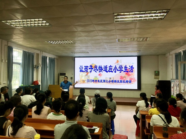 家長(zhǎng)是孩子的第一任老師,開(kāi)發(fā)區(qū)第三小學(xué)十分注重家校共建,家校合作。2019年8月29日,一年級(jí)新生入學(xué)報(bào)到第一天,學(xué)校就開(kāi)展班級(jí)家長(zhǎng)會(huì)、校級(jí)家長(zhǎng)會(huì)。