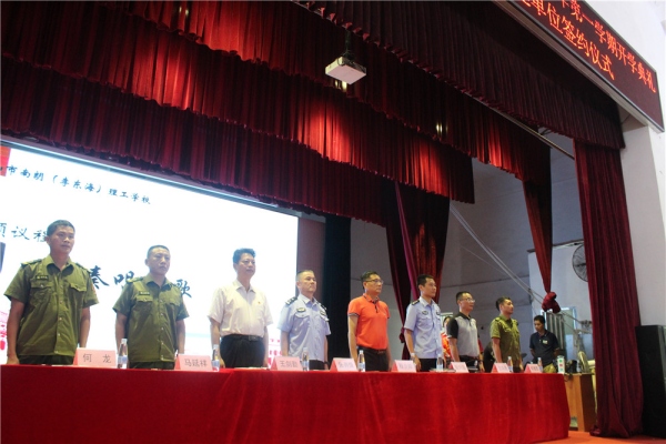 9月2日下午,中山市南朗(李東海)理工學校全體師生歡聚在學校禮堂,舉行2019—2020學年第一學期開學典禮暨與南朗專職消防隊文明共建單位簽約儀式。南朗鎮專職消防隊朱有悅副大隊長,黨支部書記馬延祥等領導和10多名消防戰士,南朗鎮南苑派出所張興強教導員,南朗(李東海)理工學校程少輝校長、王劍勤副校長、蘭澤融副校長及其他全體行政共同參加開學典禮暨簽約儀式。開學典禮由校團委副書記張浩東主持。