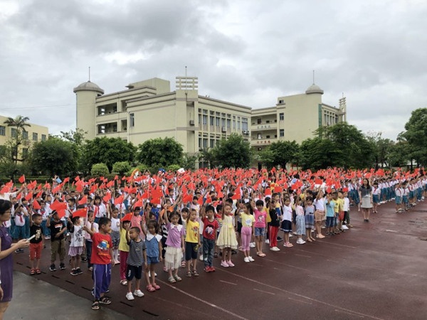 學校全體師生排列著整齊的隊伍齊聚田徑場,共同參與“我為祖國升國旗”升旗儀式。活動中,同學們昂首挺胸,精神抖擻地望向升旗臺,伴隨著《義勇軍進行曲》的奏響,注視著冉冉升起的五星紅旗。全體師生齊聲歌唱國歌,揮動手中的小紅旗,表達出對祖國崇高的敬意。升旗儀式后,學校吳燕芳校長發表了熱情洋溢的講話,教導同學們要珍惜當下來之不易的生活,努力奮斗,為祖國未來的發展貢獻自己的一份力量。