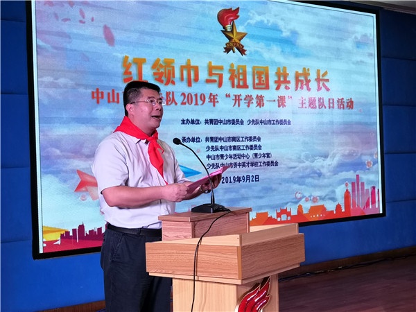 9月2日,開學第一天,以“我是新時代好隊員,我與祖國共成長”為主題的中山市少先隊2019年“開學第一課”主題隊日活動在中山市僑中英才學校舉行。市委副書記陳文鋒,團市委書記李凱航,南區(qū)黨工委書記郭淵,團市委副書記、市少工委主任李曉鳴,市教體局、市婦聯(lián)、市關(guān)工委等相關(guān)單位領(lǐng)導,以及全市各基層團委、團工委書記、少工委主任、少先隊總輔導員、少先隊員代表230人出席本次活動。