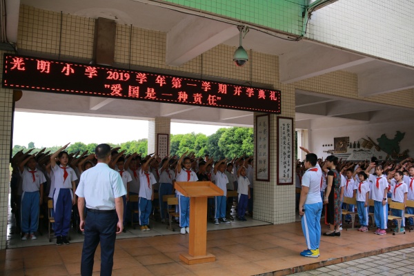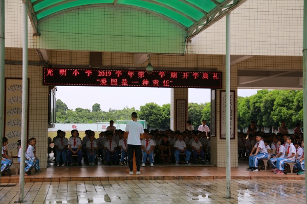 金色的九月,是溫馨的;燦爛的九月,是豐碩的,帶著秋的喜悅,光明小學(xué)迎來了新的學(xué)期,開啟了新的希望。在這收獲的季節(jié)里,在這和諧的氛圍中,全體師生齊聚新教學(xué)樓大堂通道上舉行了以“愛國(guó)是一種責(zé)任”為主題的新學(xué)期開學(xué)典禮。