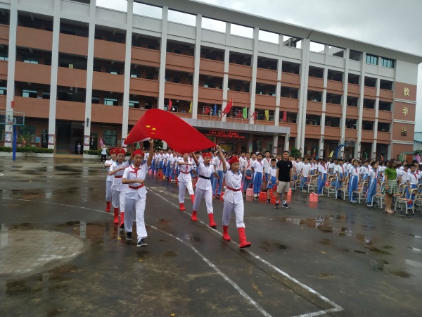 典禮開始,師生們著裝整齊,精神煥發,隨著雄壯的國歌響徹云霄,鮮艷的五星紅旗高高飄揚,師生們面對國旗莊嚴敬禮。
