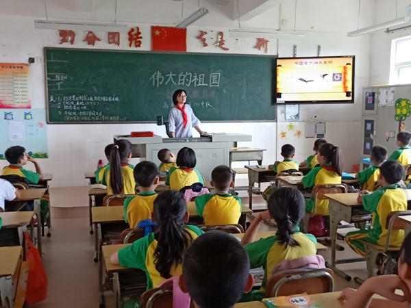 課堂伊始,各中隊輔導員通過愛國故事、愛國詩歌,引發(fā)學生共鳴,激發(fā)學生的愛國熱情。緊接著,輔導員向學生介紹了博大精深的中華文化、聞名世界的四大發(fā)明、風光秀麗的祖國山河及艱苦奮斗的科學夢想等,教室里引發(fā)陣陣的掌聲,學生們無不對偉大的祖國感到自豪和驕傲。
